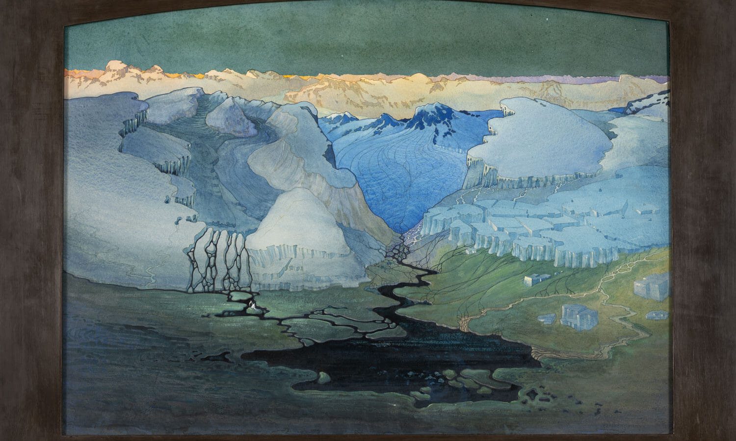 Transparence, brillance, luminosité, profondeur et légèreté… D’où provient cette sérénité émanant de l’oeuvre Pax de Carl Johan Forsberg (1868-1938) récemment acquise par le musée d’Orsay ? Paysage désertique du Grand Nord, cette oeuvre dessinée à l’aquarelle et à la gouache en 1905 représente pourtant un chaos de glace. La voici accrochée parmi d’autres dessins scandinaves et hollandais signés Larsson (1853-1919), Krøyer (1851-1909) ou Smit (1886-1948), les paysages symbolistes tranchent avec les scènes domestiques de Larsson et Krøyer.