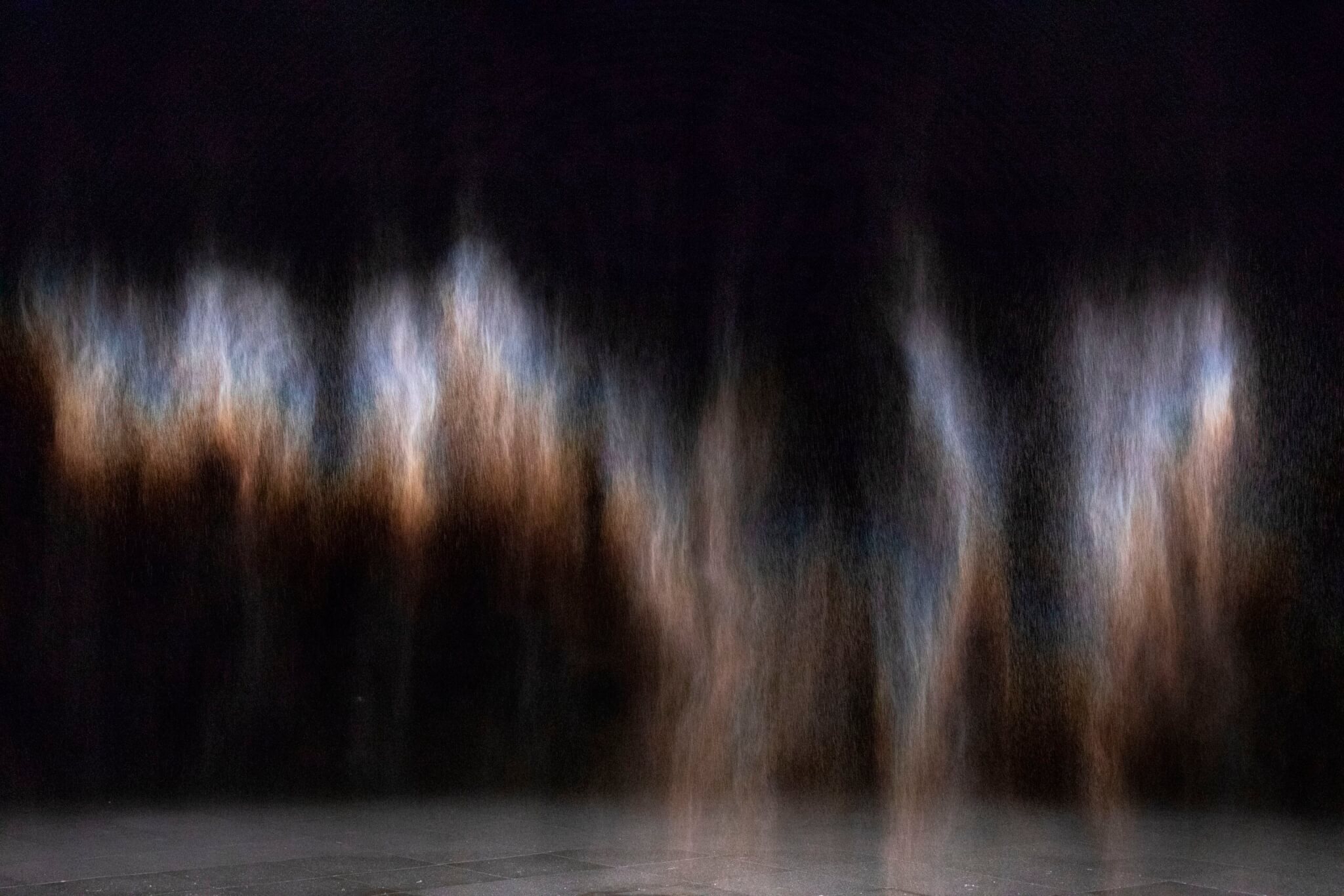 …des pièces emblématiques telles que Beauty, où un voile de brume fait apparaître un arc-en-ciel, et Riverbed, paysage immersif de roches, mais aussi de nouvelles installations inédites explorant la polarisation de la lumière (Your Negotiable Vulnerability… et Your Truths), ainsi que Presence, vaste environnement baigné d’une lumière jaune évoquant un soleil intérieur. Interactives, les œuvres s’activent par le regard et le mouvement du visiteur.