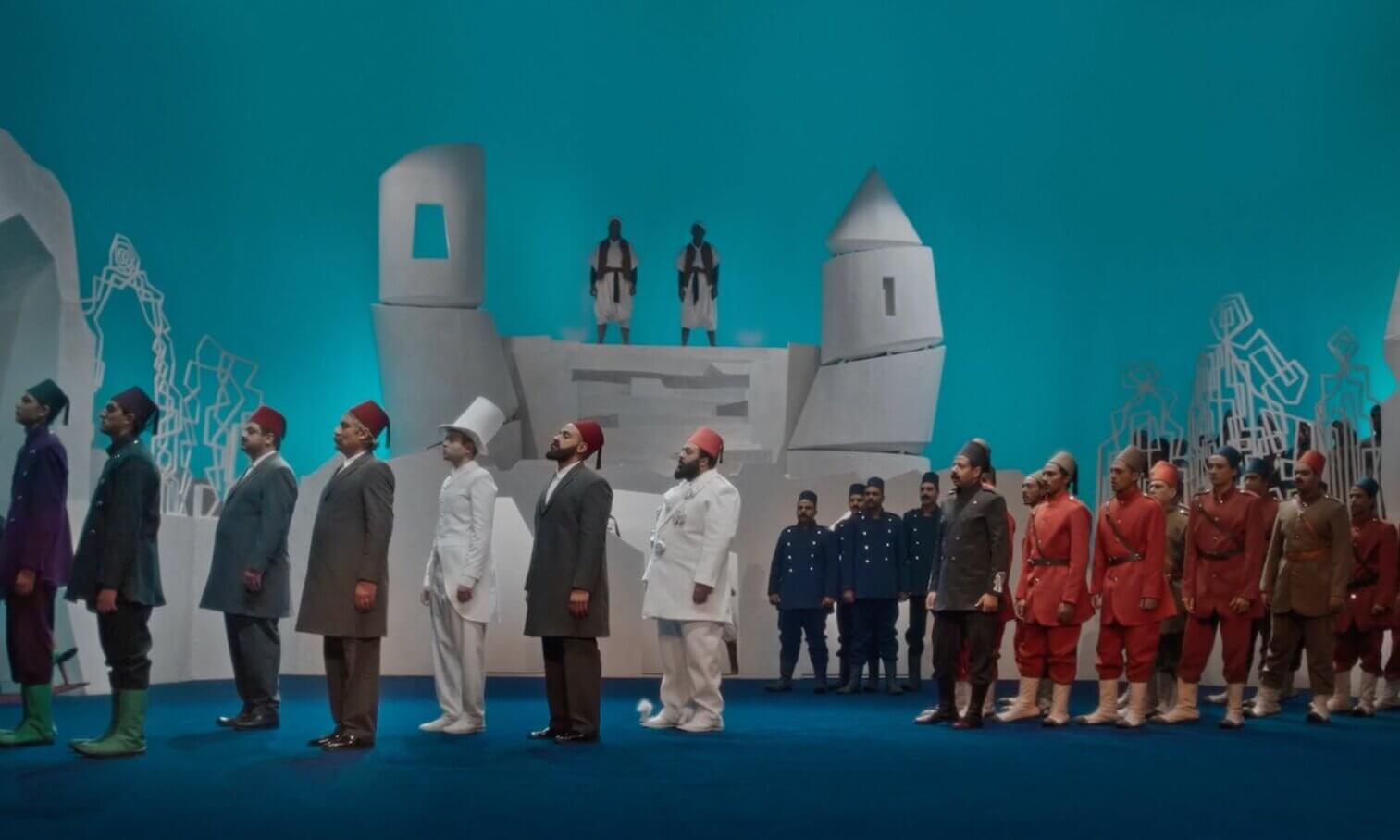 Wael Shawky (Alexandrie, 1971) signe Drama 1882 : il en est le réalisateur, le chorégraphe et le compositeur. Dans cette installation filmique, un chœur d’interprètes égyptiens chante en arabe classique. En huit tableaux, l’opéra de 45 minutes revisite la révolte d’Urabi, moment charnière qui ouvre l’ère de la domination britannique. Plutôt qu’une chronique officielle, Wael Shawky ne “raconte” pas : il propose une mémoire locale, chantée, hypnotique, où la politique se joue au présent, dans le corps et la voix.
