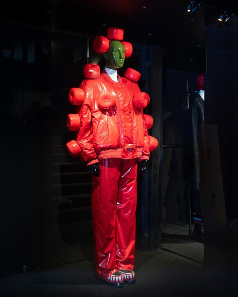 La scénographie, volontairement minimaliste, reflète l’esprit de la boutique : murs bruts, silhouettes en liberté, mannequins vintage prêtés par Raf Simons. Le parcours n’est pas chronologique mais thématique – les pionniers, les initiés, les intemporels – autant de chapitres qui révèlent la singularité de cette sélection pointue : anticonformisme, authenticité et intemporalité.