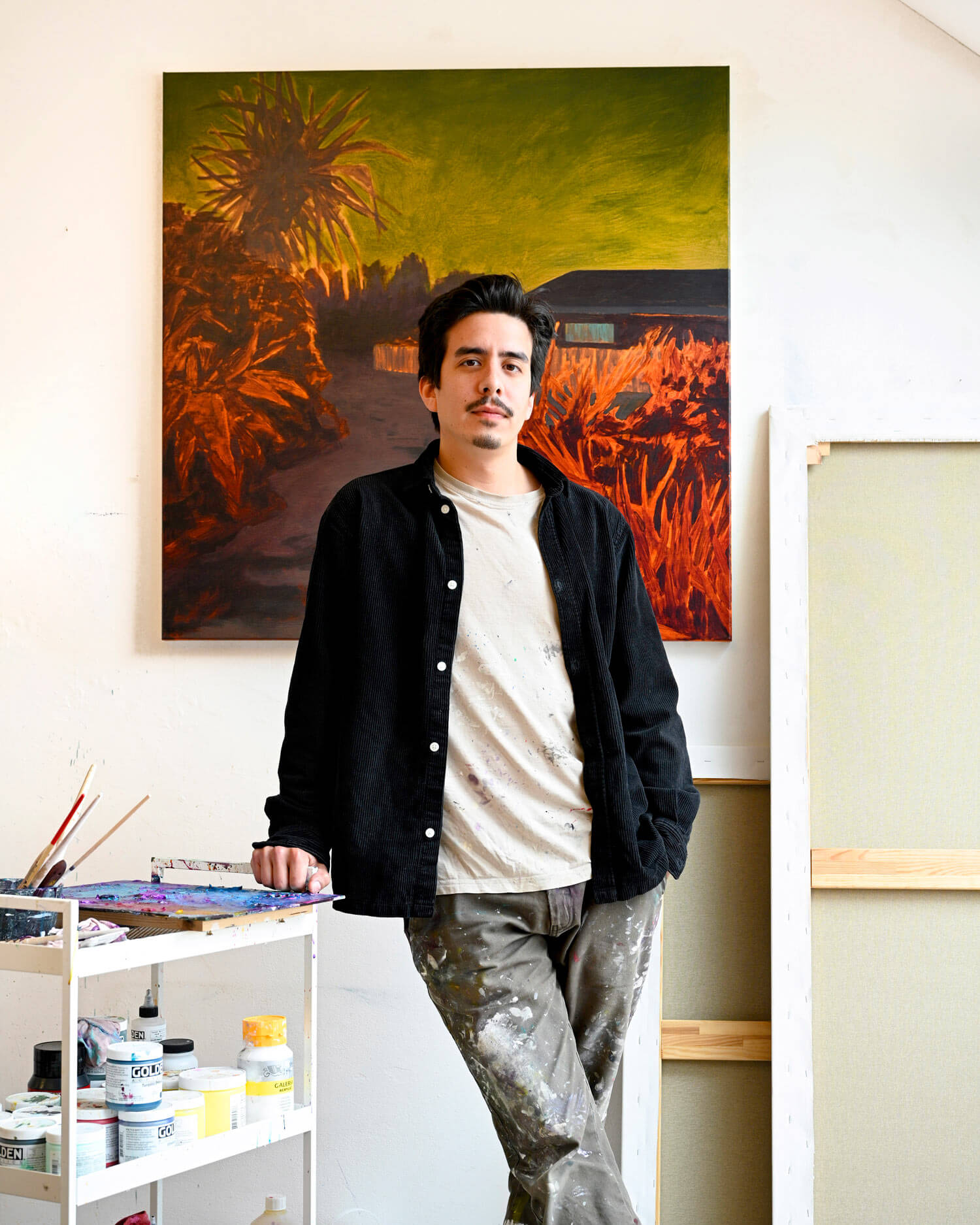 Issu d’une famille belgo-mexicaine, élevé à Bruxelles, Diego Herman a tôt éprouvé ce sentiment d’être “entre deux mondes”. De là naît une peinture de la frontière : la limite non comme une ligne neutre, mais comme un dispositif de tri.