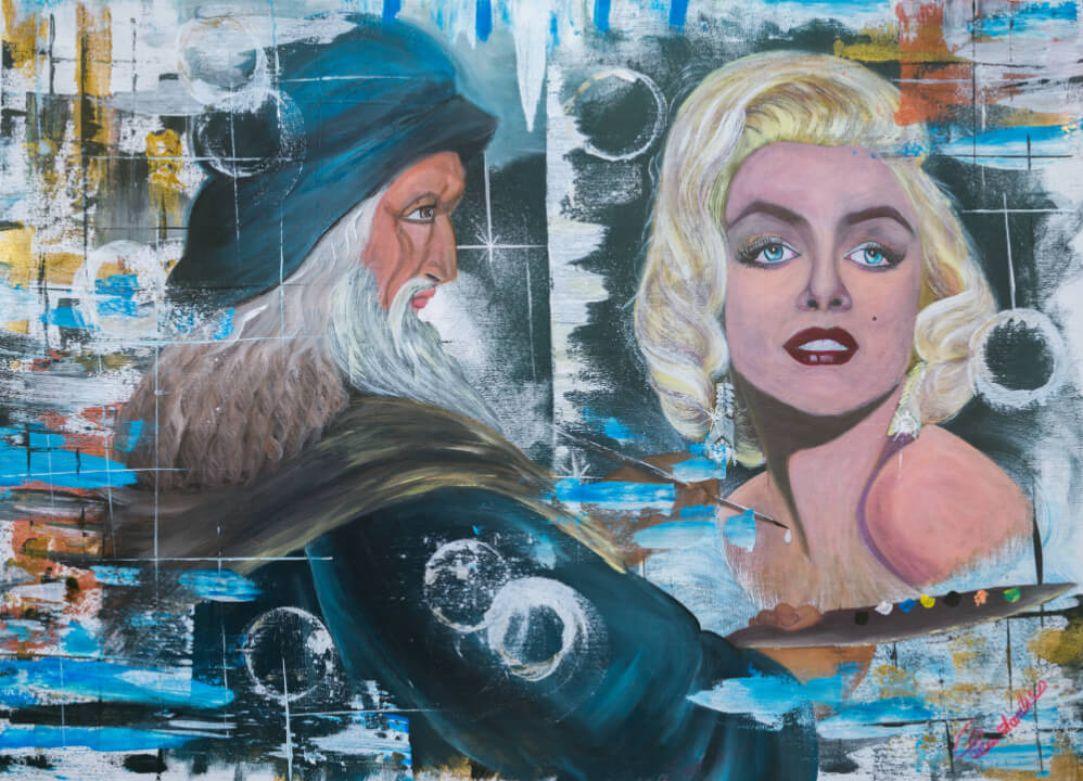 Dans une autre œuvre, « Da Vinci peignant Marilyn Monroe », Seracin comble les fossés temporels et culturels. Elle marie gracieusement la tranquillité et la contemplation, où Da Vinci, sur une toile bleue sereine, immortalise Monroe, symbolisant l’attrait perpétuel de la beauté à travers les âges. L’utilisation habile de la couleur et du pinceau de Seracin fait écho à une splendeur esthétique intemporelle.