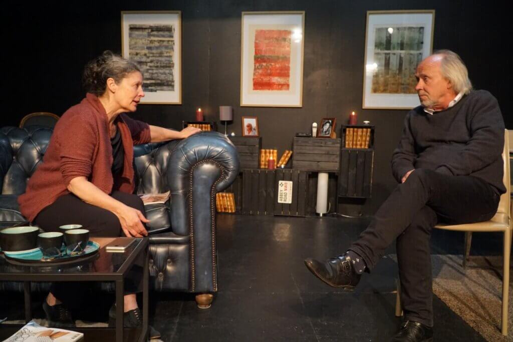 La mise en scène tout en précision et nuances de Alexis Goslain et l’interprétation des deux comédiens se montrent redoutablement efficaces. Le jeu des interprètes sonne à ce point juste que peu de spectateurs sortiront tout à fait indemnes de la représentation. À cet égard, le silence et la qualité d’écoute de la salle le soir de la première étaient probants. Dans le rôle de l’épouse blessée, on a le grand plaisir de retrouver Manuela Servais. Depuis quelques temps, cette valeur sûre du théâtre belge s’était faite plus rare (on la retrouvera dans le prochain spectacle des Galeries : Glenn, naissance d’un prodige). Quant à Michel Wright, on ne peut qu’applaudir son excellente prestation dans le rôle du mari inconsciemment et naturellement macho qui pense aimer sa femme. Lui aussi on le retrouvera le mois prochain pour la mise en scène de Le Maestro au théâtre de La Valette à Ittre (établissement qu’il dirige depuis huit ans).