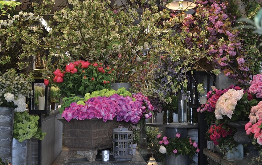 Il fleurit régulièrement la société et l'appartement. Comme lui, j'ai une prédilection pour les fleurs de jardin, les roses bien sûr, et les grands branchages de cerisiers au printemps. Il a aussi de très belles orchidées que je commande régulièrement car c'est un peu l'emblème de Sisley."