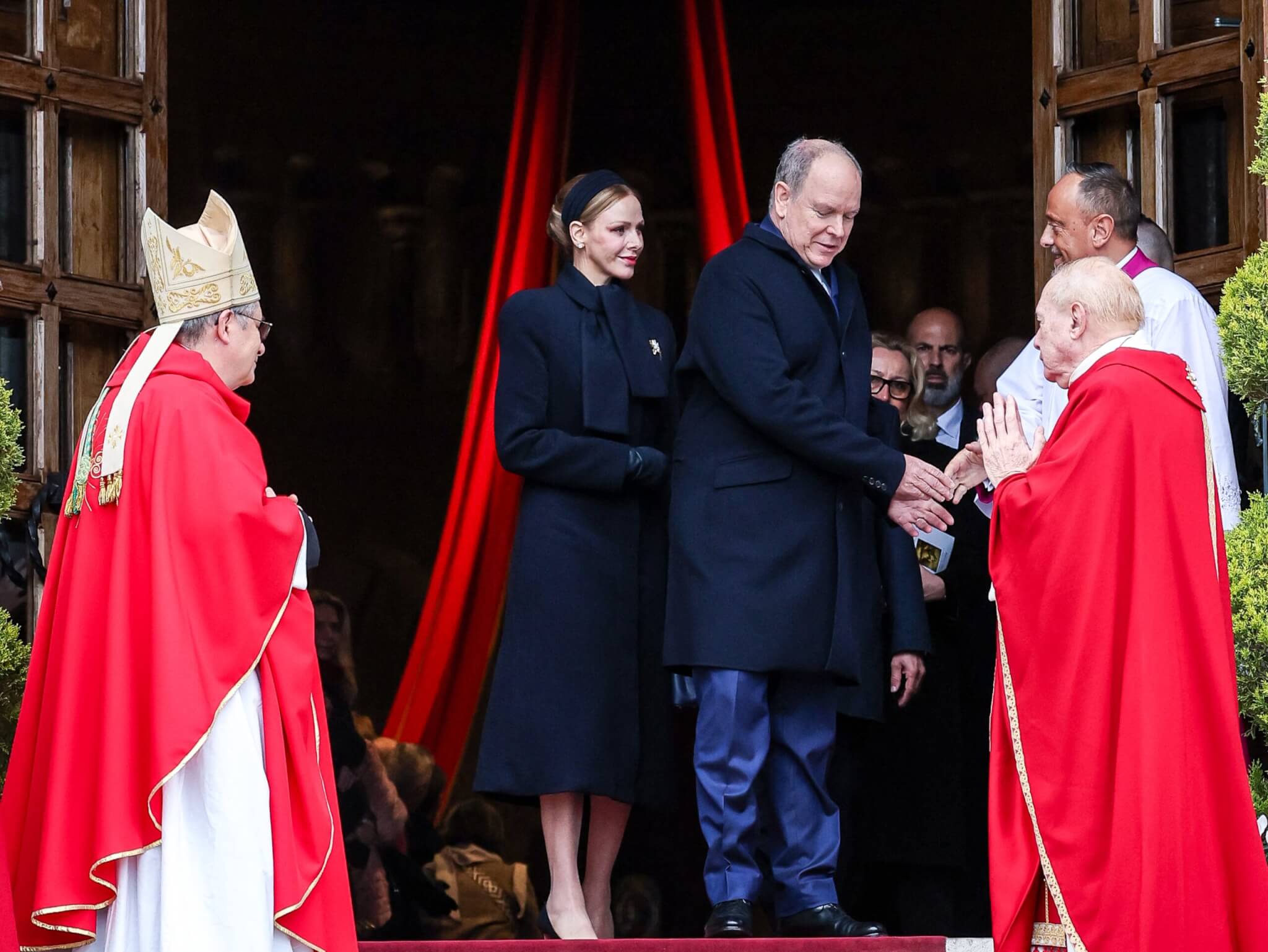 Le jour suivant, c’est sur le Rocher qu’une messe présidée par l’archevêque de Monaco honore la Sainte. Les Princes y assistent, se rendant à la cathédrale toute proche du palais pour ce moment important du calendrier monégasque, une façon aussi de démontrer l’attachement des Grimaldi à la foi catholique. Cette année, la Princesse a fait assaut d’élégance en revêtant un manteau noir signé Dolce & Gabbana, assorti à un sac Louis Vuitton, et rehaussé par une broche flamme imaginée par le créateur Jean Schlumberger pour la maison Tiffany. Au sortir de la célébration religieuse, Albert et Charlène ont regagné le palais d’où ils ont salué la foule depuis le balcon et assisté au retour des reliques de la Sainte sur le rocher.