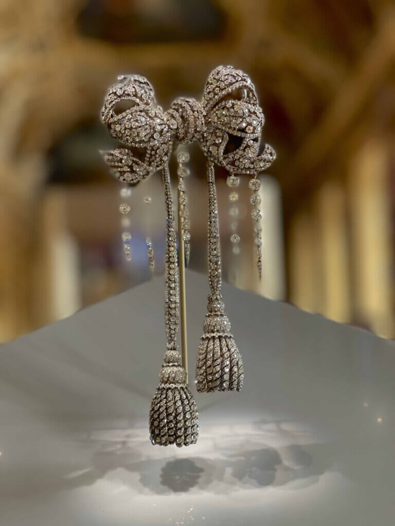 Tout d’abord, le grand nœud de l’impératrice Eugénie, rare vestige des Diamants de la Couronne de France, rescapé de la vente de 1887 voulue par Jules Ferry et le gouvernement français. Créé vers 1855 par le joaillier Kramer, il était réapparu en 2008 et était passé en vente chez Christie’s, à New York. C’est à cette occasion qu’il avait été racheté pour le Louvre.