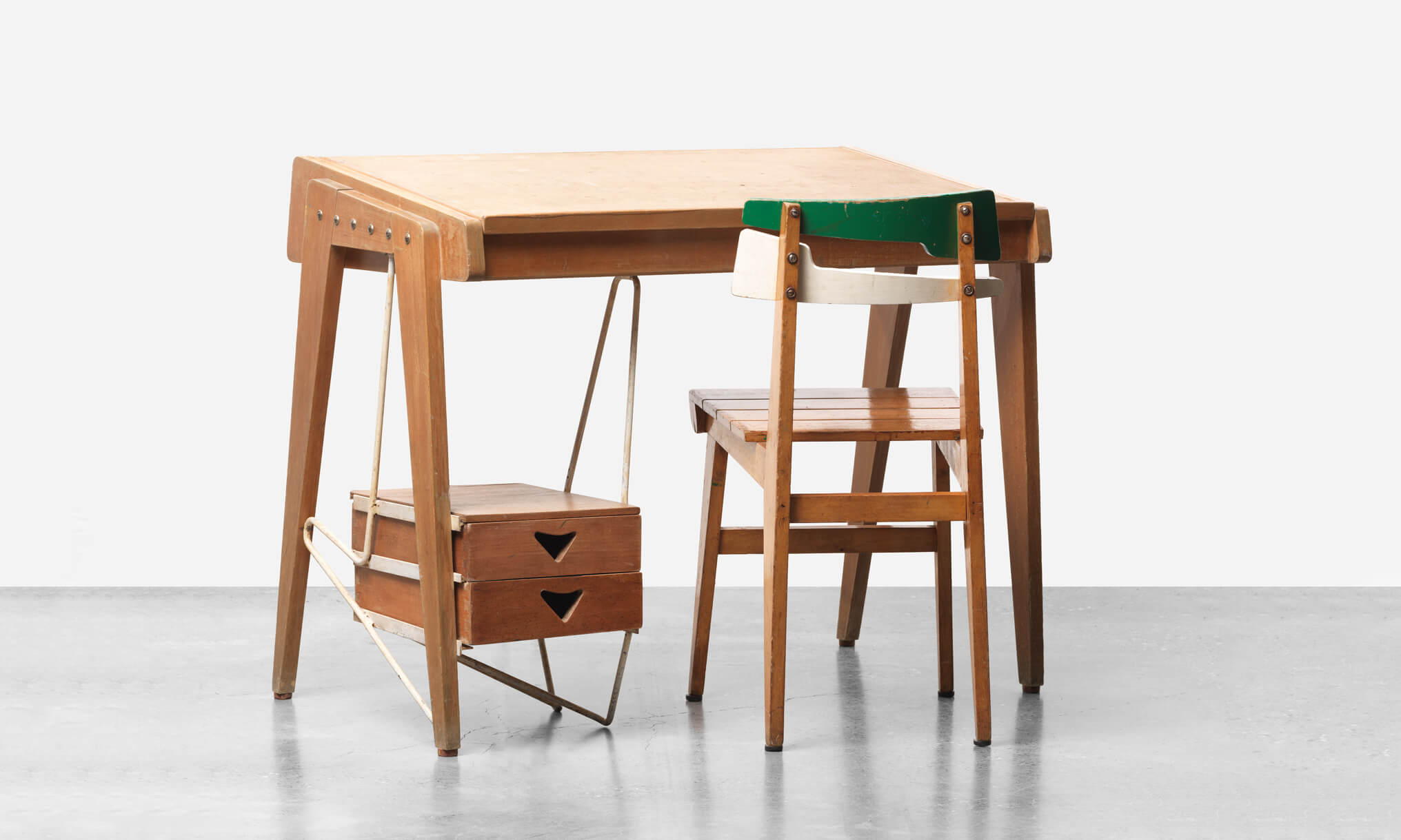 “Au cours du xxe siècle, une prise en considération du statut de l’enfant s’est opérée et les designers se sont intéressés aux pédagogies nouvelles – Decroly ou Montessori. Ce domaine est devenu un laboratoire d’expérimentation, voire un terrain de jeu…” Mobilier scolaire d’avant-garde de Jacques Hitier, chambres de Pierre Chareau, dans les années 1920, ou de Sylvie Feron, dans les années 1930, équipements scolaires de Jean Prouvé, chambre-école de la Reconstruction de Marcel Gascoin en France ou mobilier-jeu de Jules Wabbes… Tous les grands designers internationaux se sont intéressés à l’univers de l’enfant. “Pour cette exposition, nous avons acquis, avec l’aide de la Fondation Roi Baudoin, un ensemble du designer belge Lucien Engels.”