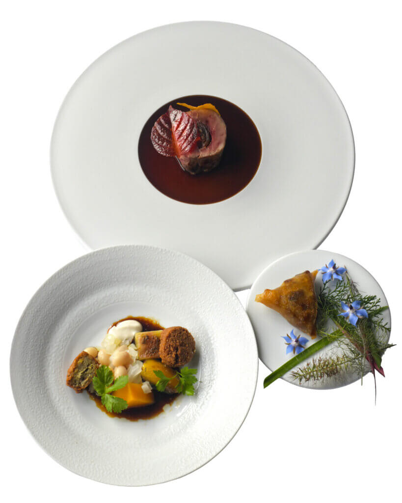 – L’aubergine ! Elle reflète bien mon identité et mon parcours. L’aubergine, c’est l’Italie et la générosité. Mais je la prépare avec un ponzu aux agrumes ou alors, confite au saté de Taiwan. Ce sont les touches japonisantes que j’aime intégrer dans ma cuisine. À vingt-cinq ans, j’ai travaillé pour une dame japonaise qui voulait apprendre la cuisine française. Je lui montrais des techniques simples et, après chaque cours, nous préparions un dîner japonais. Une belle collaboration qui m’a laissé une vraie inspiration pour ma cuisine ! Aujourd’hui, mon aubergine, entre Italie et Japon, est devenue mon plat signature. Elle plaît généralement à tout le monde.