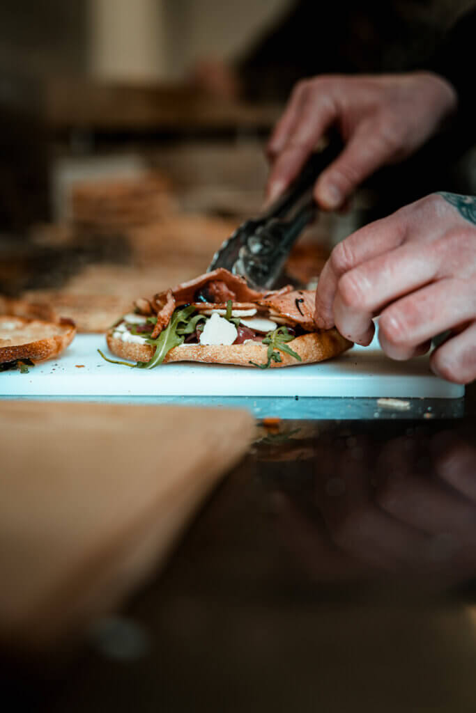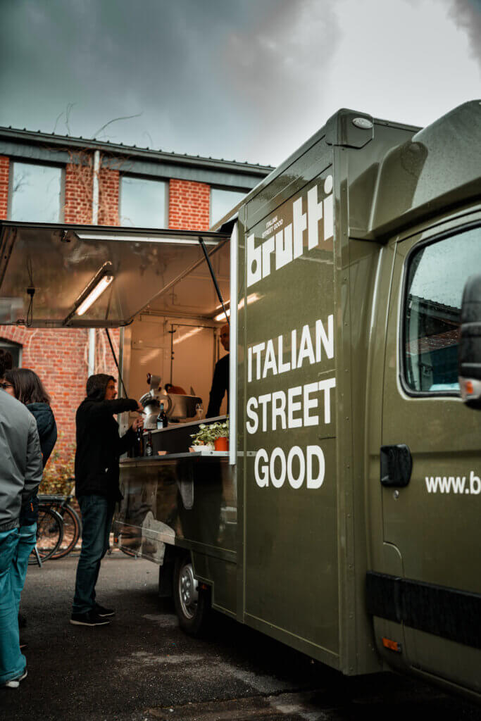 Né d’une grappa de fin de soirée entre trois amis, dont Mathias Giannuzzi, chef de La Cantinetta à Liège, Brutti est un food truck qui marque les esprits autant par sa cuisine que par son look. À la carte : une street food généreuse et conviviale, comme le crapuloso, une puccia (pain rond des Pouilles) garnie de porchetta grillée à la plancha – ou, en version végétarienne, de mozzarella fumée et purée d’artichauts – avec mayonnaise à la truffe, compotée d’oignons rouges au romarin, parmesan et roquette. À picorer aussi, une série de cicchetti, ces petites bouchées à enchaîner tout au long du repas, comme à Venise, pour une touche de raffinement.