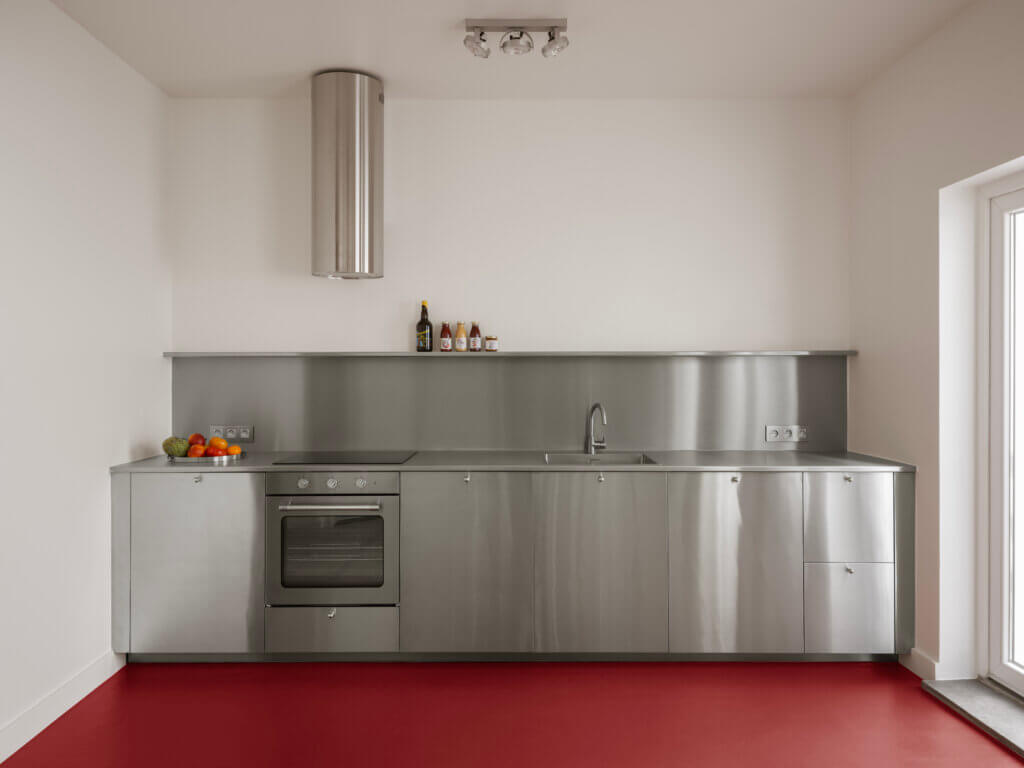 Les céramiques de Marie Brisart, devenues une signature du restaurant, trouvent ici naturellement leur place, prolongeant l’attention portée aux détails que l’on distingue dans tous les choix qui façonnent Numéro Cent : cuisine en inox brossé sur sol rouge satiné, mobilier chiné par le studio La Kasbah, pièces belges signées Vormen ou Muller Van Severen… L’ensemble compose une esthétique locale, chaleureuse et engagée, où rééditions de classiques du design réédités côtoient créations contemporaines. Imaginée comme une cuisine à vivre, la pièce centrale accueille aussi une sélection de produits belges triés sur le volet : granola Bamboo, café Belga & Co, pâte à tartiner Buddy Buddy, kombucha Rish… Tandis que la salle de bains fait place aux soins gantois Ray Care, et que la bibliothèque rassemble livres et magazines choisis avec soin.