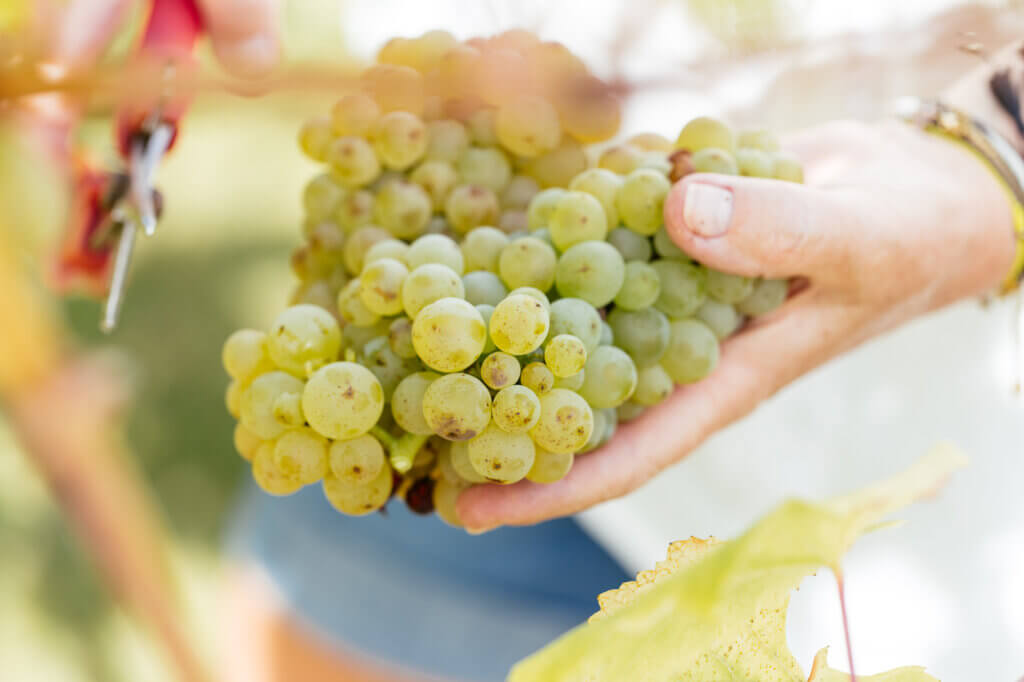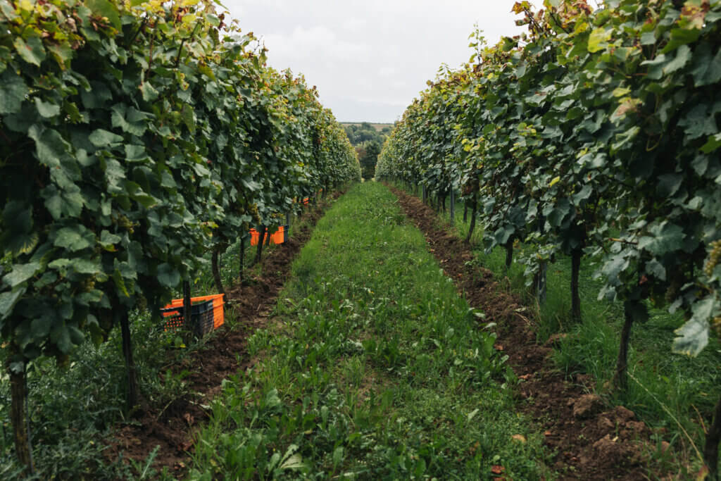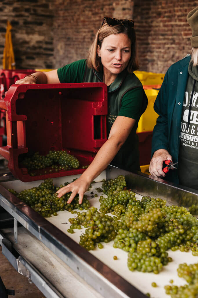 Les vendanges sont exclusivement manuelles, un choix essentiel pour limiter l’utilisation de sulfites et préserver les arômes . « Les bacs des vendangeuses mécaniques sont tout de suite remplis de jus. Ils sont donc obligé de sulfiter directement, ce que nous rechignons à faire », explique François-Hubert du Fontbaré. Le domaine dispose d’une table de tri pour ne conserver que les raisins parfaitement sains, quitte à laisser une partie de la récolte au sol : lors de la vendange 2025, huit à dix tonnes de chardonnay ont été écartées en raison d’oïdium et de botrytis.