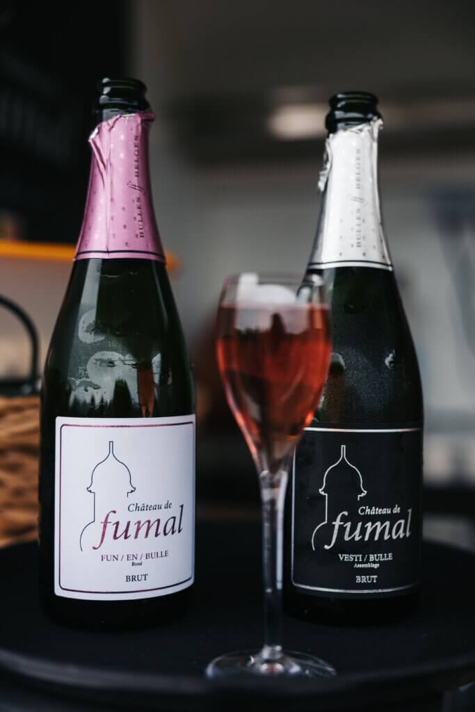 Le Château de Fumal propose actuellement quatre cuvées, élaborées avec l’expertise de deux œnologues champenois réputés, Romain Lefevre et Sébastien Boever, ainsi que de Jacques Lemoine, œnologue DNO belge, sous l’œil avisé du maître de chai, Christophe Stenuit. La gamme s’articule autour d’une progression cohérente. VESTI/BULLE, l’assemblage équilibré et harmonieux aux arômes de fleurs et de fruits blancs rehaussés d’une touche de litchis, constitue la cuvée d’entrée de gamme accessible ; PRÉ/EN/BULLE, le blanc de blancs (100% chardonnay) minéral et droit aux notes d’amandes et de fleurs blanches, incarne la pureté calcaire du terroir ; NOCT/EN/BULLE, le blanc de noirs (100% pinot noir) vineux et structuré, dévoile pêche et fruits rouges avec une touche saline qui en fait la cuvée gastronomique par excellence ; enfin FUN/EN/BULLE, le rosé festif et gourmand aux fruits rouges croquants, propose un plaisir immédiat. C’est le vin de célébration, déconnecté de la hiérarchie qualitative pour assumer pleinement son registre festif.