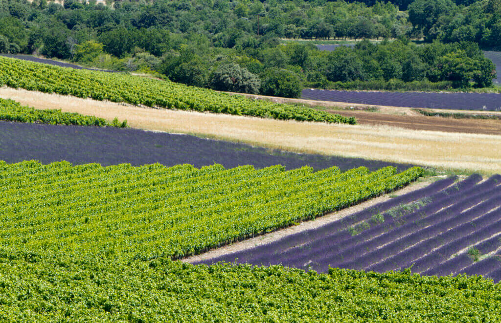 La région héberge également deux autres cultures complémentaires de la vigne : la lavande et la truffe. La culture de la lavande permet la rotation des sols et un complément financier non négligeable pour l’équilibre des comptes. La culture de la truffe est traditionnelle, ici.