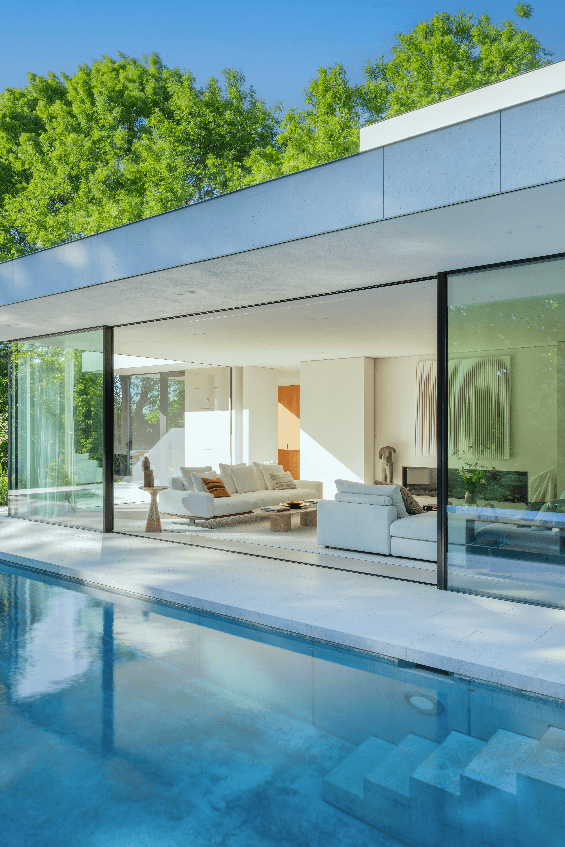 De jour comme de nuit, la piscine joue un rôle déterminant dans la conception de la demeure, lui apportant par sa proximité une vraie touche hollywoodienne.