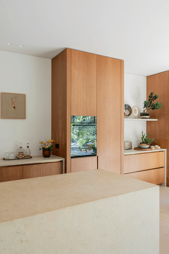 La cuisine dispose d’un espace déjeuner tourné vers l’extérieur.