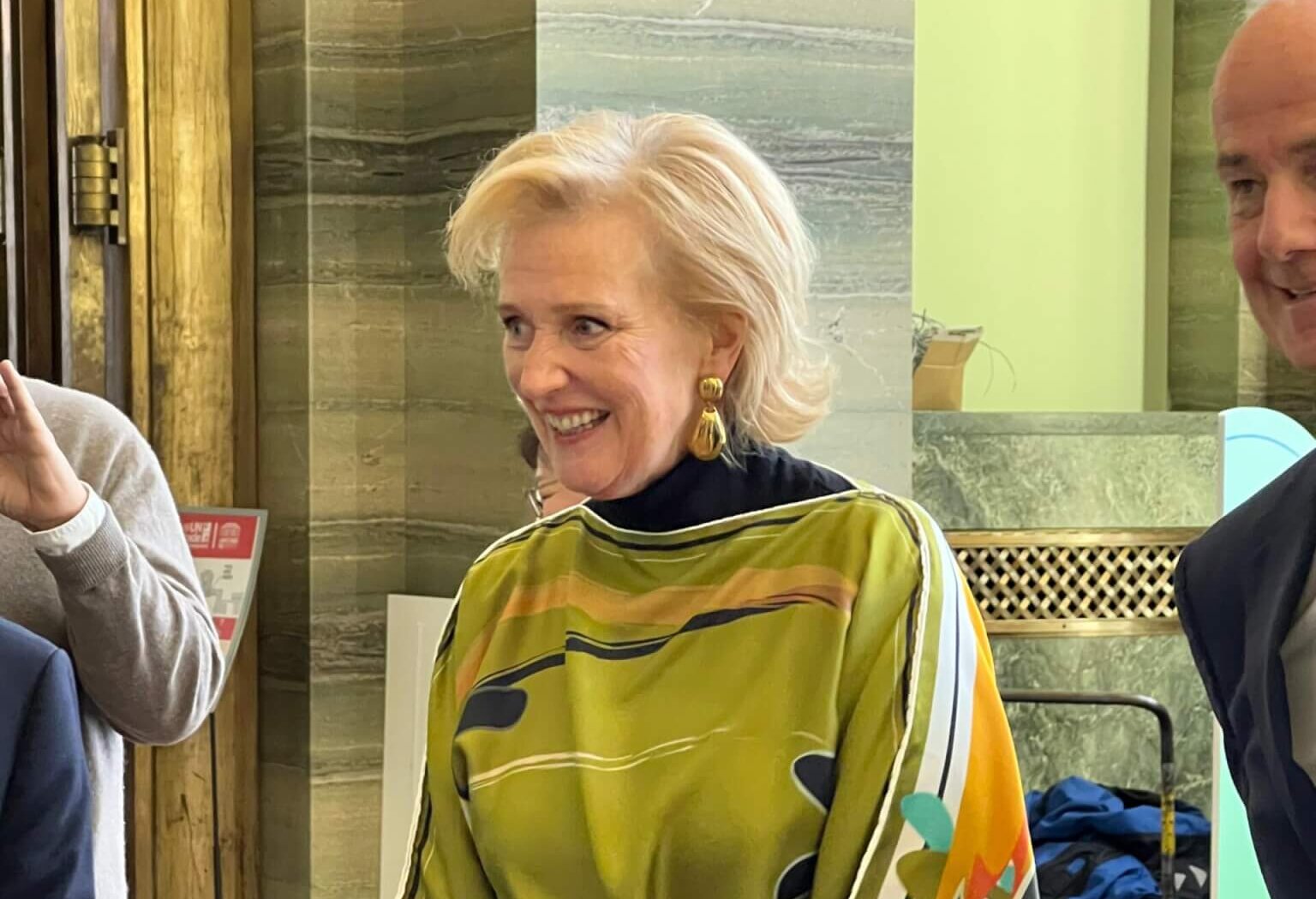 La princesse Astrid a choisi de porter une création signée Roseline d’Oreye lors de sa participation à une conférence aux Nations Unies à Genève. L’ensemble se compose d’une robe en soie raffinée accompagnée d’un sac en cuir peint à la main par l’artiste elle-même. Ce choix vestimentaire marque une reconnaissance significative pour la créatrice bruxelloise, installée aux Galeries Royales Saint-Hubert. Illustratrice et peintre de formation, diplômée de l’École Supérieure des Beaux-Arts Saint-Luc à Liège, Roseline d’Oreye a progressivement développé son univers de création textile depuis le début des années 2000.