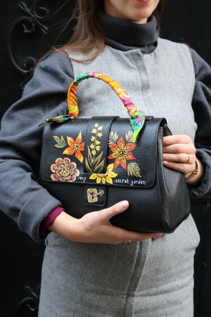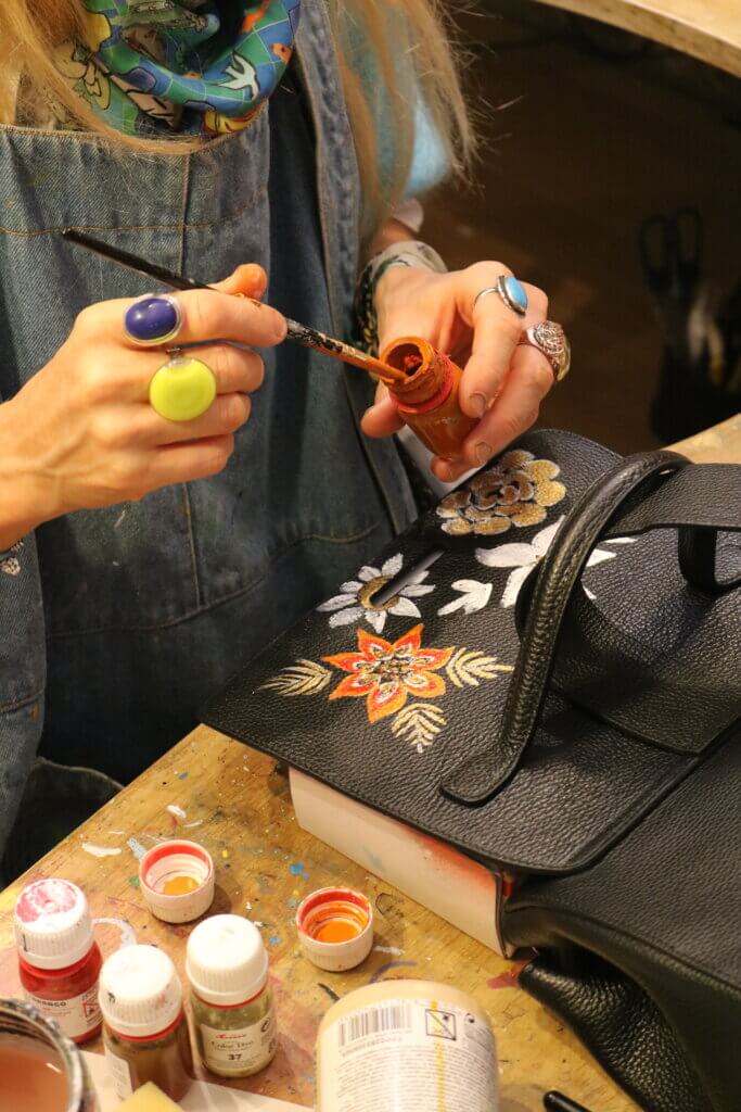 Avant de se consacrer pleinement à la soie, elle a illustré une vingtaine d’ouvrages et développé une pratique d’art-thérapeute. Cette double formation artistique et pédagogique nourrit aujourd’hui ses collections, caractérisées par des motifs joyeux, colorés et inspirés de la nature : oiseaux, papillons, jardins, flamants, panthères et fleurs.