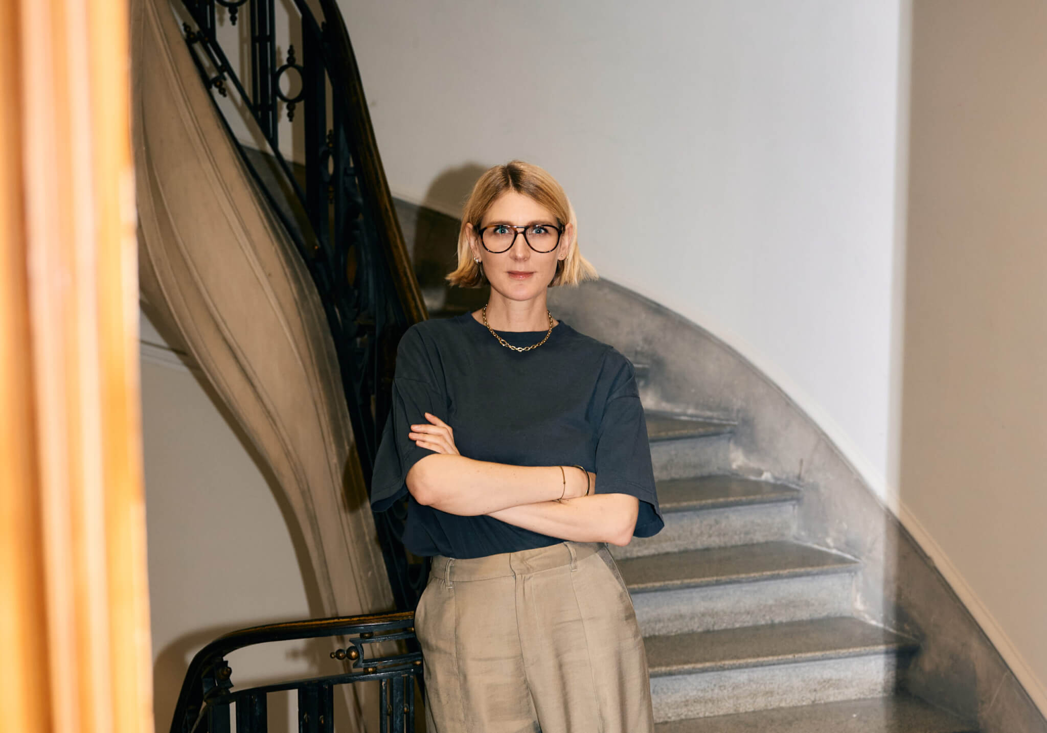 “Ma grand-mère m’a donné le goût des bijoux. Quand ils sont précieux, ils portent en eux une histoire qui se transmet. Après avoir eu la chance de présenter le journal télévisé, j’avais envie d’un projet plus créatif et entrepreneurial. Daŭre est pour moi, la concrétisation d’un autre rêve d’enfant”, confie-t-elle. Daŭre voit le jour en juin 2024, portée par une amitié et une vision communes. Aux côtés d’Alix, Julie de Cartier s’impose comme une partenaire évidente. Graphiste et consultante créative, elle a collaboré pendant des années avec de grandes maisons de joaillerie. Ensemble, elles fondent une maison belge dont le nom, “daŭre”, signifie “durable” en espéranto : un manifeste en soi. L’architecture moderne est au cœur de leur langage esthétique. Les lignes sont simples, graphiques, la recherche formelle, évidente. Leur alliance, bijou déjà signature de la jeune marque, incarne cet équilibre : une présence affirmée, sans jamais s’imposer. Daŭre revendique une joaillerie de contrastes : or jaune et or blanc, courbes et angles, douceur et caractère. Des bijoux pensés pour traverser le temps, se porter au quotidien, s’oublier presque… avant de se transmettre. La première collection se voulait telle une “trousse à bijoux idéale”. Depuis, l’univers s’est enrichi, les collections sont conservées, appelées à dialoguer entre elles. Une trentaine de pièces composent aujourd’hui l’offre, toutes réalisées à la main. On aime cette joaillerie responsable, fidèle à l’époque, mais ancrée dans le geste artisanal. Cette année, Alix nous annonce une nouvelle collection, “peut-être ponctuée de pierres de couleur”. En attendant, un tour sur l’e-shop ou dans le showroom place Brugmann permet de découvrir cet univers à la fois simple et raffiné. Un univers qui ne pouvait naître ailleurs : Bruxelles occupe une place particulière dans le cœur d’Alix Battard. Si elle a grandi à la campagne, en province de Hainaut, aujourd’hui, après plus d’une vingtaine d’années dans la capitale, elle se sent citadine. “À Bruxelles, été comme hiver, je sillonne la ville à vélo, c’est tellement plus agréable ! Je suis capable de faire plusieurs kilomètres pour trouver le bon commerce…” Voici d’ailleurs quelques adresses qui ne décevront pas.