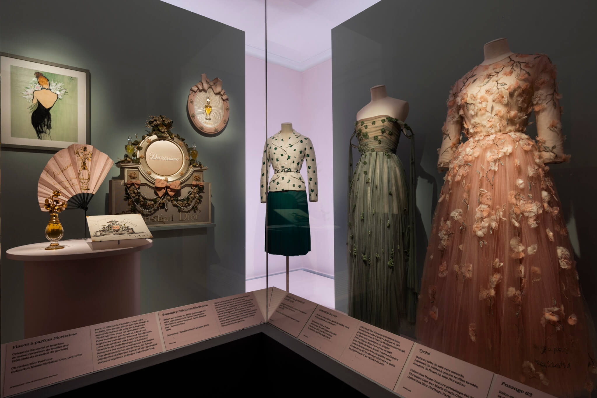 Le musée Christian Dior, situé dans la villa Les Rhumbs – demeure d’enfance du couturier – révèle l’origine de son amour des fleurs, hérité de sa mère. Une fascination qui nourrira toute son œuvre. Dès 1947, avec la ligne Corolle du New Look, Dior invente les “femmes-fleurs” et, la même année, signe avec Paul Vacher son premier parfum, Miss Dior, véritable bouquet olfactif. L’exposition met en lumière ce lien indéfectible entre couture, parfums et botanique, à travers des archives, des silhouettes de haute couture et des créations emblématiques comme Diorissimo ou Diorama.