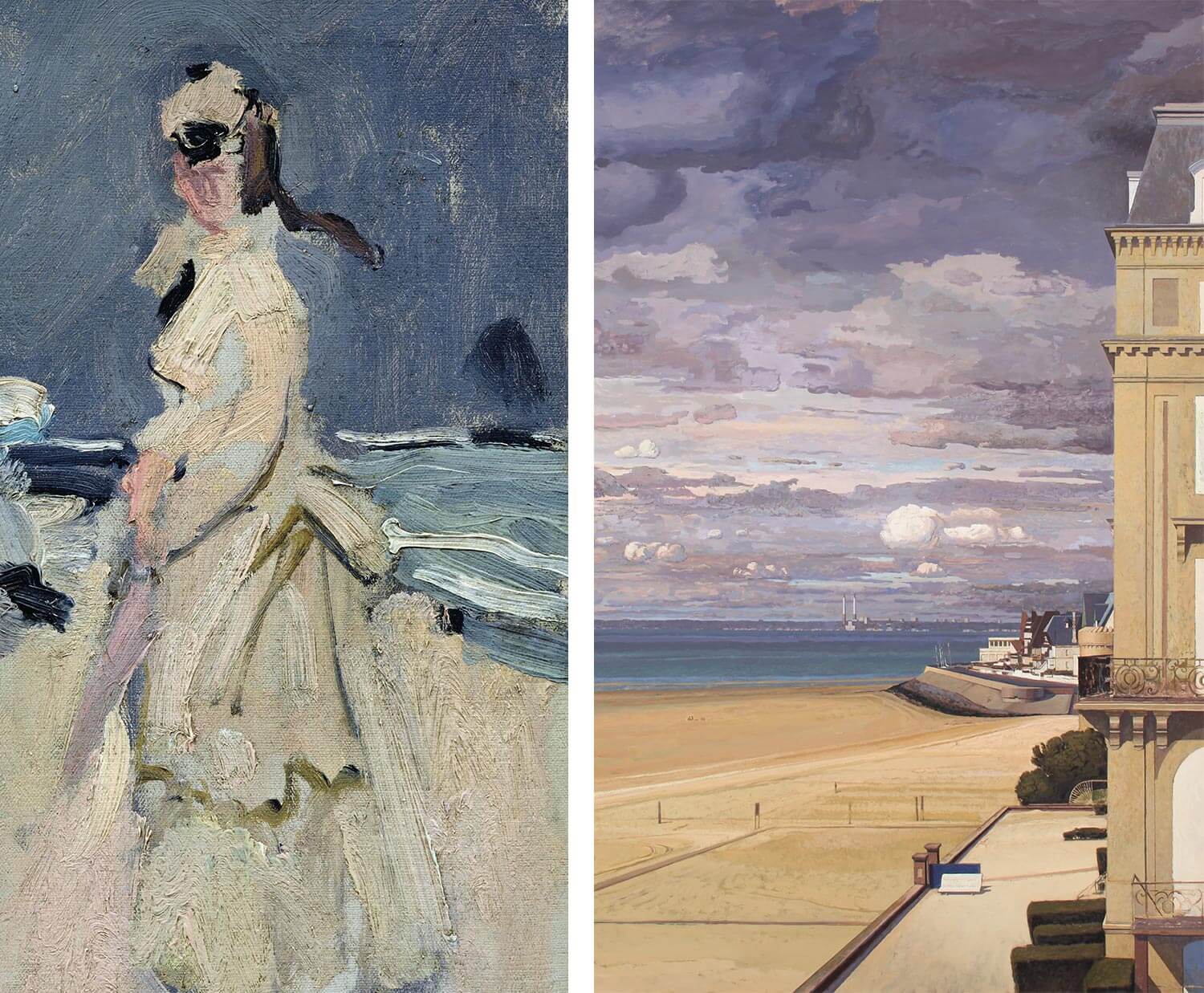 Sur les traces de Corot, Boudin, Courbet,Whistler, Marquet et bien d’autres peintres de ciels changeants, Jean-Baptiste Sécheret (°1957) a, pendant des décennies, peint sur le motif les plages de Normandie. C’est dans un beau dialogue avec les toiles de Claude Monet que nous sont révélées ces peintures à la colle sur papier marouflé et ses huiles, mais aussi ses estampes et ses pastels. Les plus subtils camaïeux de bleus, de roses, de gris, d’ocres et de bruns y déclinent les heures jusqu’à la Tombée du jour et l’Hora Magica quand le paysage se nimbe de mystère. Empreints de mélancolie, ces rivages déserts aux mille nuances sont un bel hommage à la peinture sérielle.