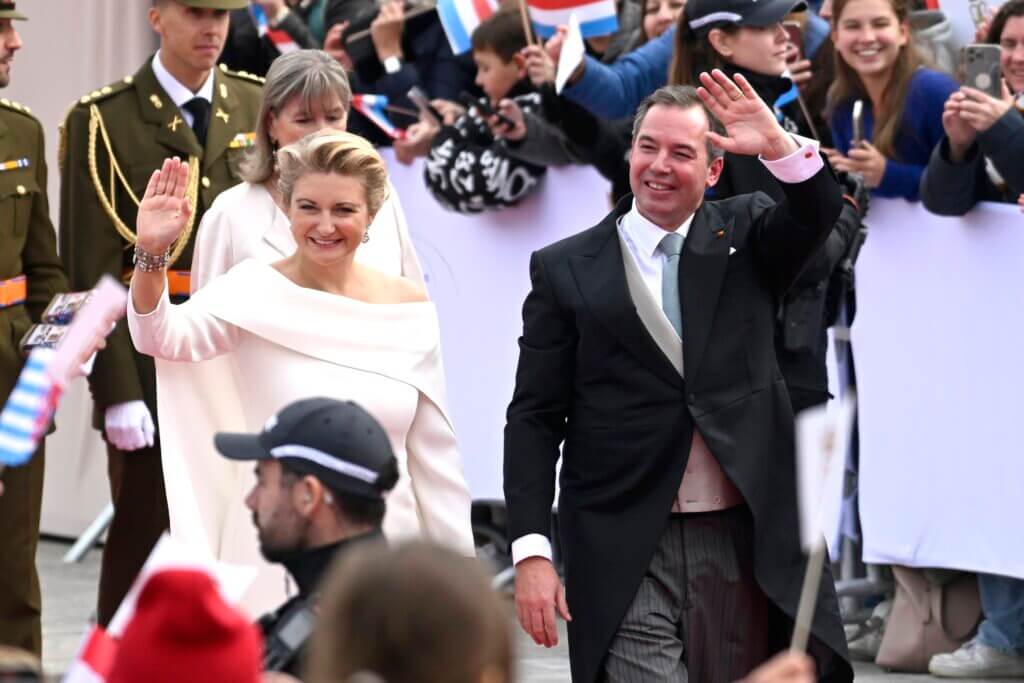 Outre le gouvernement et les autorités du pays, Guillaume a pu compter sur la présence de sa sœur Alexandra dont l’accouchement est imminent, et de ses frères Louis, Sébastien et Félix, venu de Provence accompagné de son épouse la princesse Claire. Les princesses Margareta et Marie-Astrid ainsi que les princes Jean et Guillaume, tantes et oncles du nouveau Grand-Duc avaient eux-aussi fait le déplacement, avec leurs conjoints respectifs. Des liens étroits existent depuis bien longtemps entre les monarchies du Benelux. Il n’était donc pas étonnant que les souverains belges et néerlandais aient rallié le Luxembourg. Ainsi, le roi Philippe et la reine Mathilde en robe rouge de Christian Dior occupaient le premier rang, aux côtés de la princesse Élisabeth qui avait fait confiance à Natan, du roi Willem-Alexander des Pays-Bas, de la reine Maxima, extrêmement élégante en Claes Iversen et la princesse d’Orange Catarina Amalia en Alex Perry.