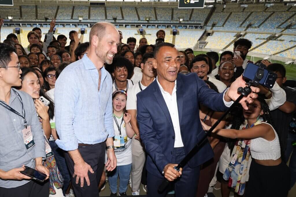 Earthshot Prize. Former Brazilian footballer Cafu takes a photo with the Prince of Wales, as they meet participants of the Generation Earthshot Programme, at Maracana Stadium in Rio de Janeiro, on day one of his visit to Brazil for the annual Earthshot Prize Awards. Picture date: Monday November 3, 2025. Photo credit should read: Aaron Chown/PA Wire URN:82269962 ! only BELGIUM !