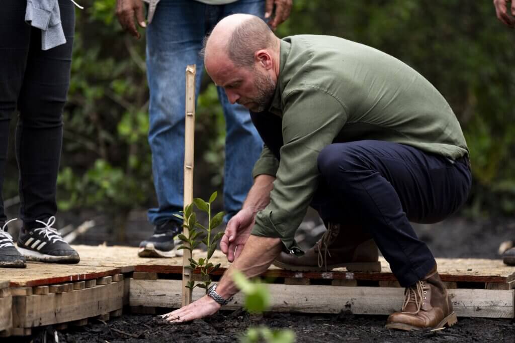 Le lendemain, le prince William a joué une partie endiablée de beach-volley sur la mythique plage de Copacabana. Les pieds dans le sable, il a rejoint des jeunes étudiants de l’institut Levante coachés par la star locale Carolina Solberg Salgado. Lors de son séjour brésilien, le Prince a aussi voulu insister sur l’importance de la protection des mangroves car ces plantes halophytes qui poussent dans les zones humides côtières stockent le carbone, protègent la biodiversité et préservent les rivages des tempêtes. Près de Rio, des gardiens locaux restaurent la mangrove protégée de Guapimirim grâce au reboisement, à la dépollution de l’eau et à la conservation de la faune sauvage. Le Prince s’est aventuré sur le terrain en hors-bord, plantant quelques arbres de façon symbolique et rencontrant bénévoles et promoteurs du projet. Dans le cadre de la Royal Foundation, William a annoncé un nouveau partenariat avec The Coordination of Indigenous Organisations of the Brazilian Amazones, l’union des populations locales qui sont celles qui connaissent l’Amazonie mieux que personne. Dans son allocution, il a mis en lumière l’urgence de protéger les espèces les plus vulnérables de la planète, et notamment celles de la plus grande forêt tropicale au monde à la biodiversité incomparable. Pourtant, cet écosystème fragile est confronté à d’immenses menaces environnementales, souvent alimentées par le crime organisé. Ce sommet était l’occasion de renforcer la collaboration internationale contre les ravages environnementaux. Le Prince s’est basé sur le programme africain de l’année passée qui a permis d’apporter une aide à près de 6000 rangers dans tout le continent.
