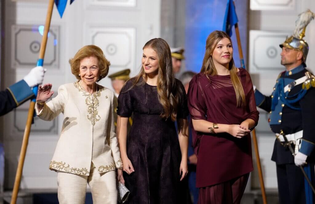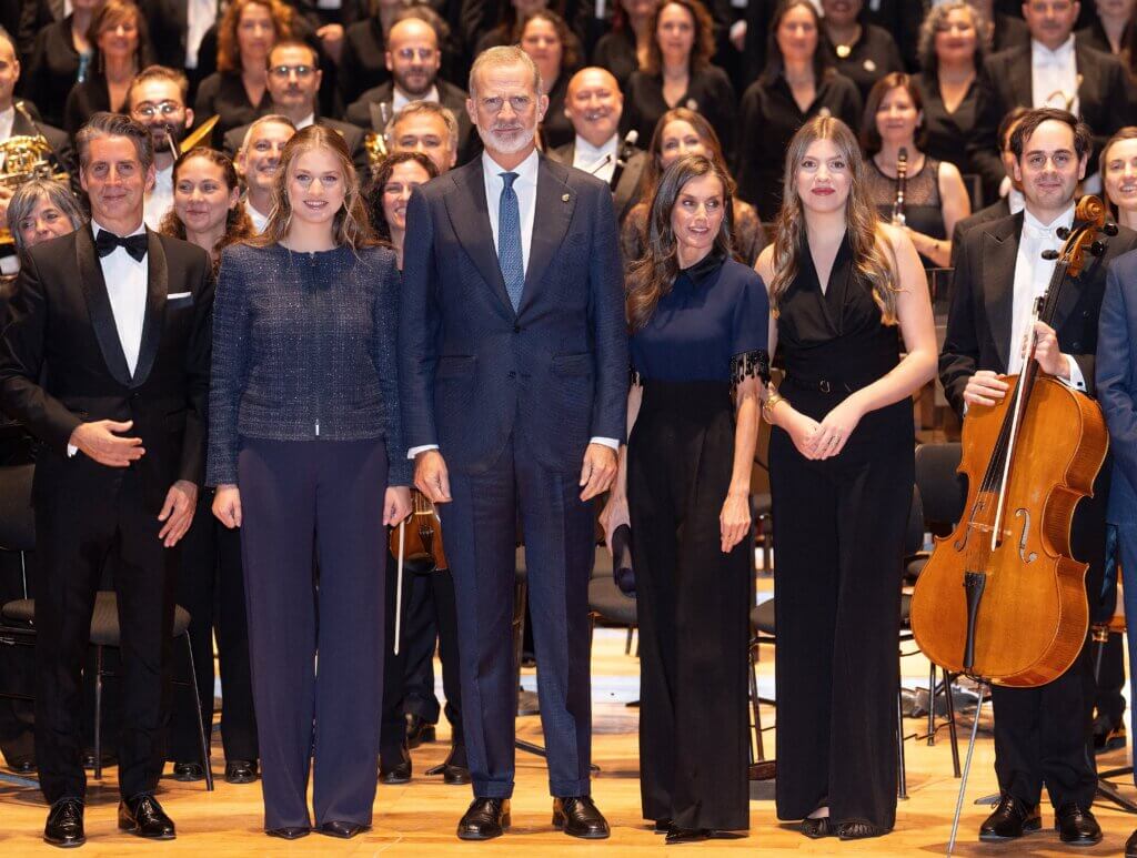 Le lendemain, la journée commença au palais royal d’Olite, un vaste édifice qui fut construit à l’origine au début du XVe siècle mais qui, dans sa forme actuelle, est le fruit d’une vaste campagne de restaurations qui débuta en 1940. Après un bain de foule des plus enthousiastes, le cap fut mis sur Tudela où les souverains et la princesse furent conviés au palais du marquis de San Adrián, magnifique exemple de l’architecture renaissante de la vallée de l’Èbre. Un mois plus tard, c’est Oviedo qui accueillait comme chaque année la remise des Prix des Asturies. Rentrée du Portugal, l’infante Sofia mais aussi la reine Sofia s’étaient jointes à Felipe VI, Letizia et Leonor pour cette cérémonie devenue une tradition. La veille, un concert de musique classique ponctué de morceaux de Brahms et de Dvorak a marqué le coup d’envoi des festivités.