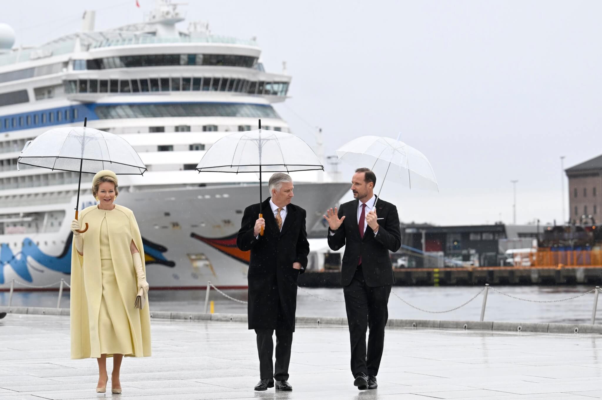 La coopération énergétique entre les deux pays fut au programme du lendemain. La Norvège est le premier fournisseur de gaz de la Belgique mais notre pays s’est imposé comme un partenaire de choix à travers la société de dragage DEME qui a racheté l’entreprise norvégienne Havfram, spécialisée dans l’éolien offshore. En compagnie du prince Haakon, les souverains belges ont visité le Norse Wind, fleuron de la flotte. L’après-midi, Mathilde, portant toujours un ensemble jaune citron signé Natan, a retrouvé la reine Sonja pour une séance de lecture à la bibliothèque Deichmann, afin de promouvoir la littérature. Le soir, il était question d’art puisque les souverains belges ont reçu leurs homologues norvégiens dans le cadre du musée national où sont conservées les œuvres du célèbre peintre Edward Munch. Ils ont aussi offert un concert avec, parmi les morceaux choisis, la Légende norvégienne d’Eugène Isaÿe. La Reine avait opté pour une robe en velours bleu sortie des ateliers de la maison Christian Dior.