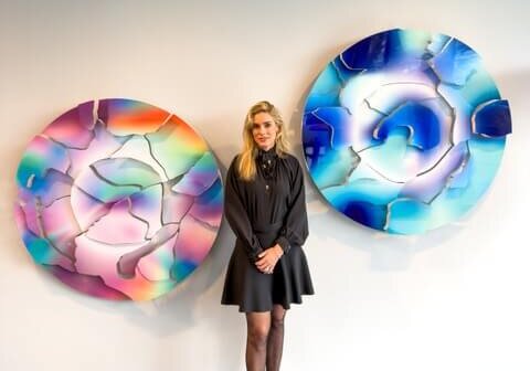 Ces sculptures s’appuient sur la technique d’impression ChromaLuxe, une impression haute définition sur aluminium qui confère aux œuvres leur luminosité et leur profondeur caractéristiques. D’un diamètre de 120 centimètres chacune et produites en édition de trois exemplaires, elles déploient des strates lumineuses jaillissant du centre comme des éclats du cosmos projetés vers le spectateur. L’artiste, dont la pratique emprunte autant à l’abstraction picturale qu’à la photographie numérique hypertravaillée, cherche à saisir l’instant précis où l’invisible devient perceptible, et où la lumière, presque matière, transforme le mystère de l’univers en expérience sensible.