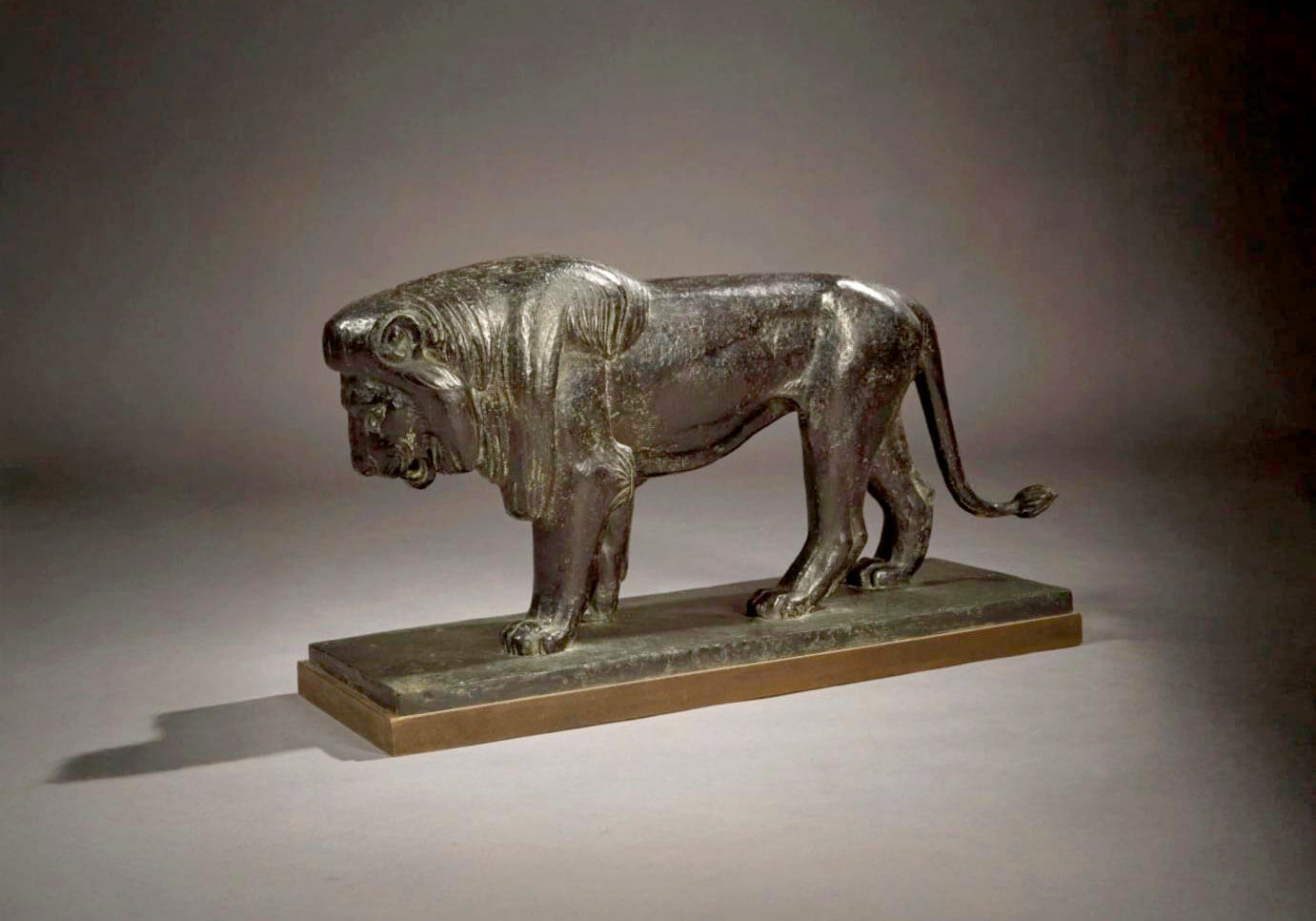Si la sculpture animalière est largement représentée aujourd’hui par des artistes des deux sexes, ce n’était pas le cas au début du xxe siècle. Seules trois femmes faisaient alors partie du fameux “Groupe des douze”, association de sculpteurs animaliers initiée par Pompon en 1931. Aux côtés de Jane Poupelet et Adrienne Jouclard, Anne Marie Profillet, travaillait le sujet animalier dans une simplification des formes moins tranchée que ses collègues Pompon ou Lémar, plus proche du style de Georges-Lucien Guyot. On ne recense ainsi que 70 sculptures de l’artiste, d’où l’intérêt porté à ce majestueux lion. Qui plus est, il s’agit du modèle exposé en 1937 au Salon d’automne et resté dans la famille de l’artiste. Un résultat qui fera remonter la cote de cette artiste.