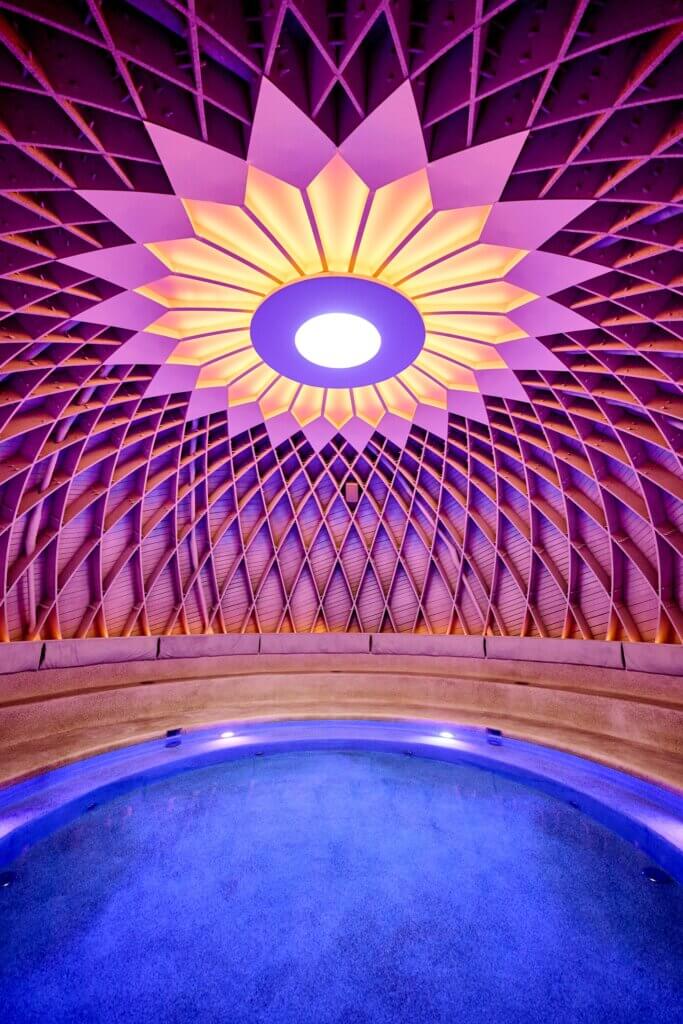 La force du lieu tient dans son approche à 360°. Ici, les rituels ne sont pas seulement techniques : ils sont portés par des praticiens passionnés, experts et profondément humains. Massages thérapeutiques, soins énergétiques, rituels visage haut de gamme, thérapies manuelles, sessions de respiration ou d’apnée, bains sonores, hydromassages, médecine et nutrition : Forest accueille une constellation de pratiques complémentaires, toutes réunies autour d’un principe simple — prendre soin de l’être dans sa globalité. Le Dôme, signature du pôle bien-être, est probablement l’espace le plus fascinant. Un lieu presque sacré, dédié aux bains sonores, à la méditation profonde, au watsu — ce soin aquatique inspiré du water shiatsu qui enveloppe le corps dans une eau chaude et porteuse. Une expérience unique à Bruxelles, réputée pour ses effets régénérants.