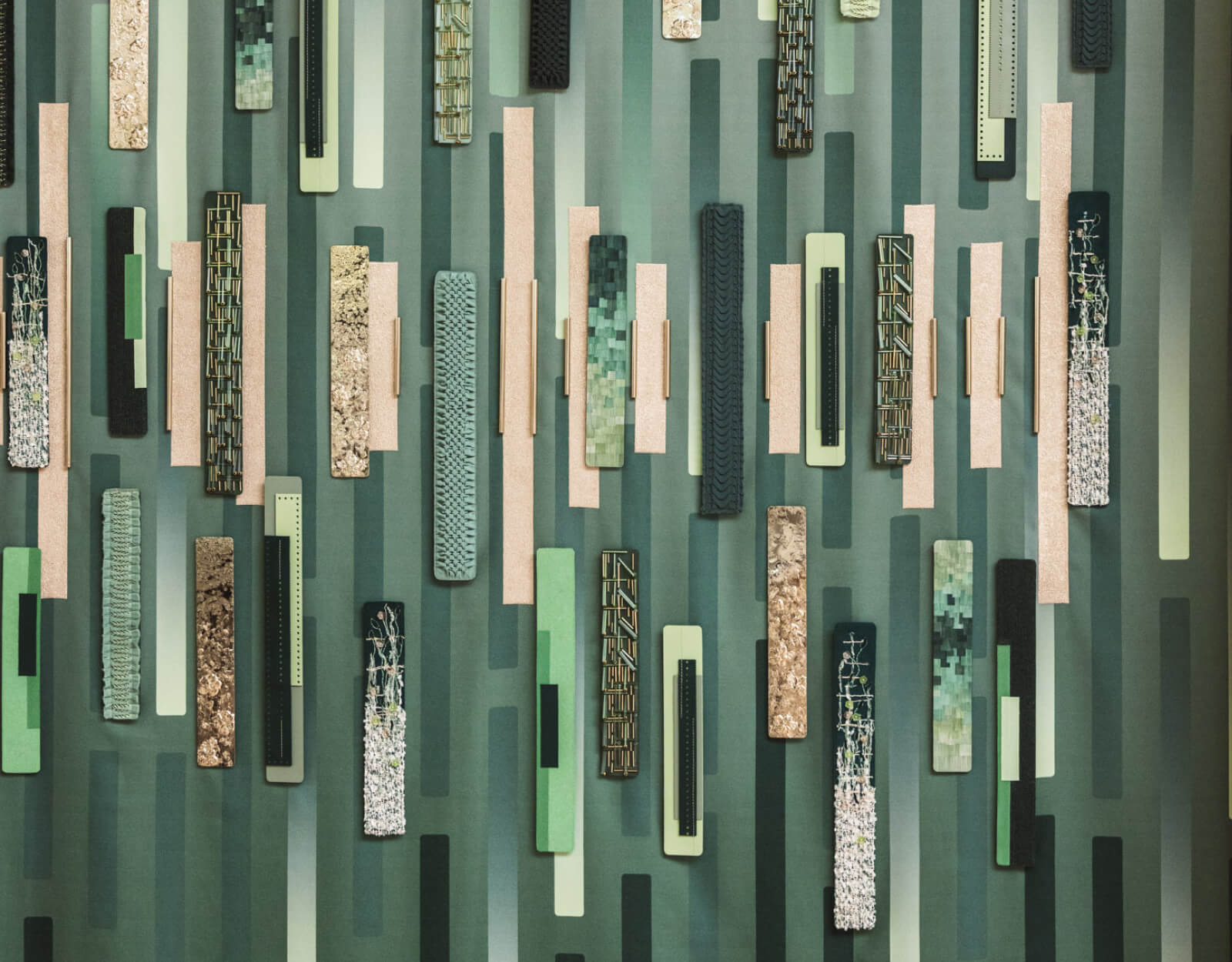 La maison d’art Atelier Montex, fondée en 1949 à Paris par Jacques Lemonier, est à l’origine du Studio MTX, créé en 2013, pour offrir à la broderie un terrain d’expression libre et inédit : l’espace intérieur. Studio MTX fait partie des Métiers d’art de Chanel, réunis, au nord de Paris, dans un immeuble, le19M, conçu par l’architecte Rudy Ricciotti. Ouvert en 2021, ce lieu unique regroupe douze maisons, dont le plumassier Lemarié, le brodeur Lesage, le chausseur Massaro, le plisseur Atelier Lognon… et près de 700 artisans d’excellence. Studio MTX et son équipe de 70 collaborateurs proposent aux décorateurs et aux architectes des matières et des techniques empruntant à divers territoires des arts appliqués : la broderie, le tissage, la tapisserie, la maroquinerie… et même l’origami. Le fil devient câble, le sequin se transforme en module d’aluminium et le rivetage côtoie la couture. L’alchimie des matériaux se conjugue dans la sophistication.