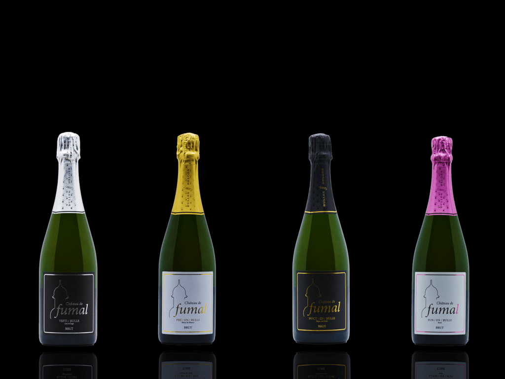 Le Château de Fumal propose actuellement quatre cuvées, élaborées avec l’expertise de deux œnologues champenois réputés, Romain Lefevre et Sébastien Boever, ainsi que de Jacques Lemoine, œnologue DNO belge, sous l’œil avisé du maître de chai, Christophe Stenuit. La gamme s’articule autour d’une progression cohérente. VESTI/BULLE, l’assemblage équilibré et harmonieux aux arômes de fleurs et de fruits blancs rehaussés d’une touche de litchis, constitue la cuvée d’entrée de gamme accessible ; PRÉ/EN/BULLE, le blanc de blancs (100% chardonnay) minéral et droit aux notes d’amandes et de fleurs blanches, incarne la pureté calcaire du terroir ; NOCT/EN/BULLE, le blanc de noirs (100% pinot noir) vineux et structuré, dévoile pêche et fruits rouges avec une touche saline qui en fait la cuvée gastronomique par excellence ; enfin FUN/EN/BULLE, le rosé festif et gourmand aux fruits rouges croquants, propose un plaisir immédiat. C’est le vin de célébration, déconnecté de la hiérarchie qualitative pour assumer pleinement son registre festif.