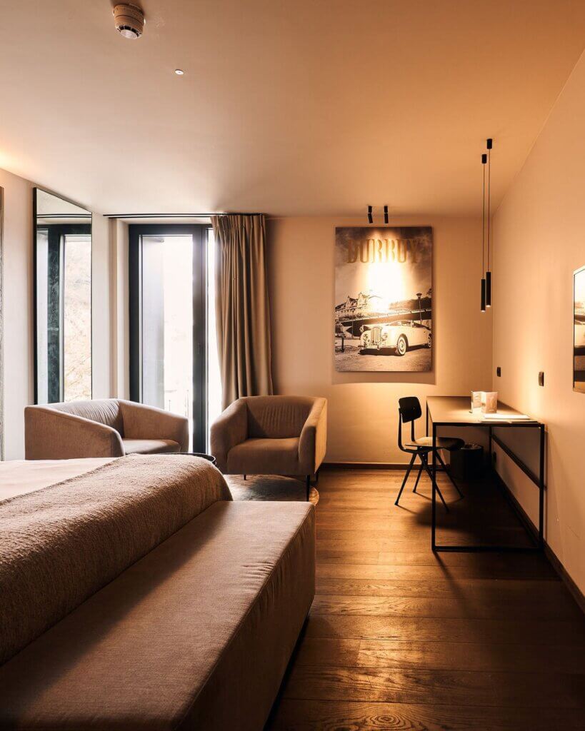 À Durbuy, plus petite ville du monde mais véritable capitale touristique ardennaise, Le Sanglier des Ardennes ne cesse de se réinventer. Cet hôtel-restaurant historique, fondé en 1952, conjugue aujourd’hui héritage, luxe et ambition gastronomique. Acquis en 2017 par l’homme d’affaires Marc Coucke et son partenaire Bart Maerten, l’établissement a fait l’objet d’une rénovation spectaculaire, portée par un investissement de 27 millions d’euros. Résultat : 94 chambres, quatre restaurants, un spa panoramique et une vision affirmée du luxe contemporain.