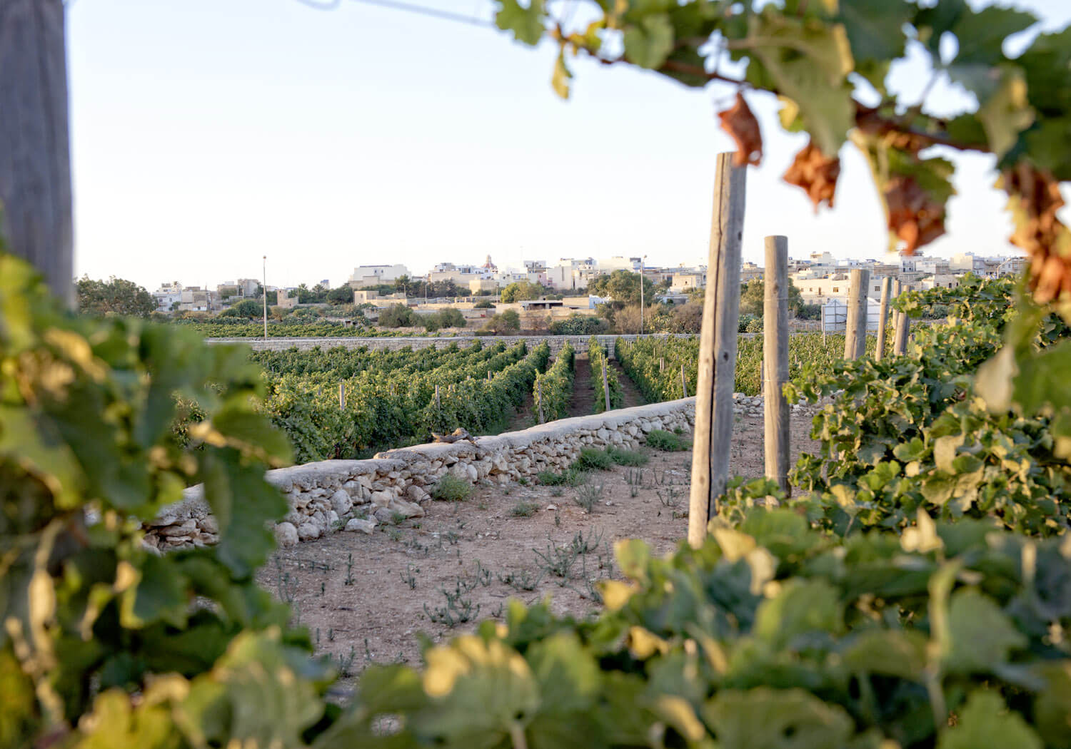 Sur ces terroirs majoritairement calcaires et argileux, à l’aridité presque désolante, les vignes souffrent de la chaleur sous un soleil de feu. L’été, la température atteint les 40 °C, et seules les fines perles d’un goutte-à-goutte leur offrent un sursis de fraîcheur. Dans ces conditions extrêmes, deux variétés de cépages indigènes dominent. En rouge, le Ġellewża qui produit des vins ronds et fruités, aux notes de baies et de fruits mûrs, souvent assemblé avec du merlot ou de la syrah pour lui donner plus de structure. Et la Girgentina, un cépage blanc à l’origine de vins légers aux arômes acidulés d’agrumes et de fleurs blanches, parfois assemblé avec du chardonnay, pour lui donner plus de corps.