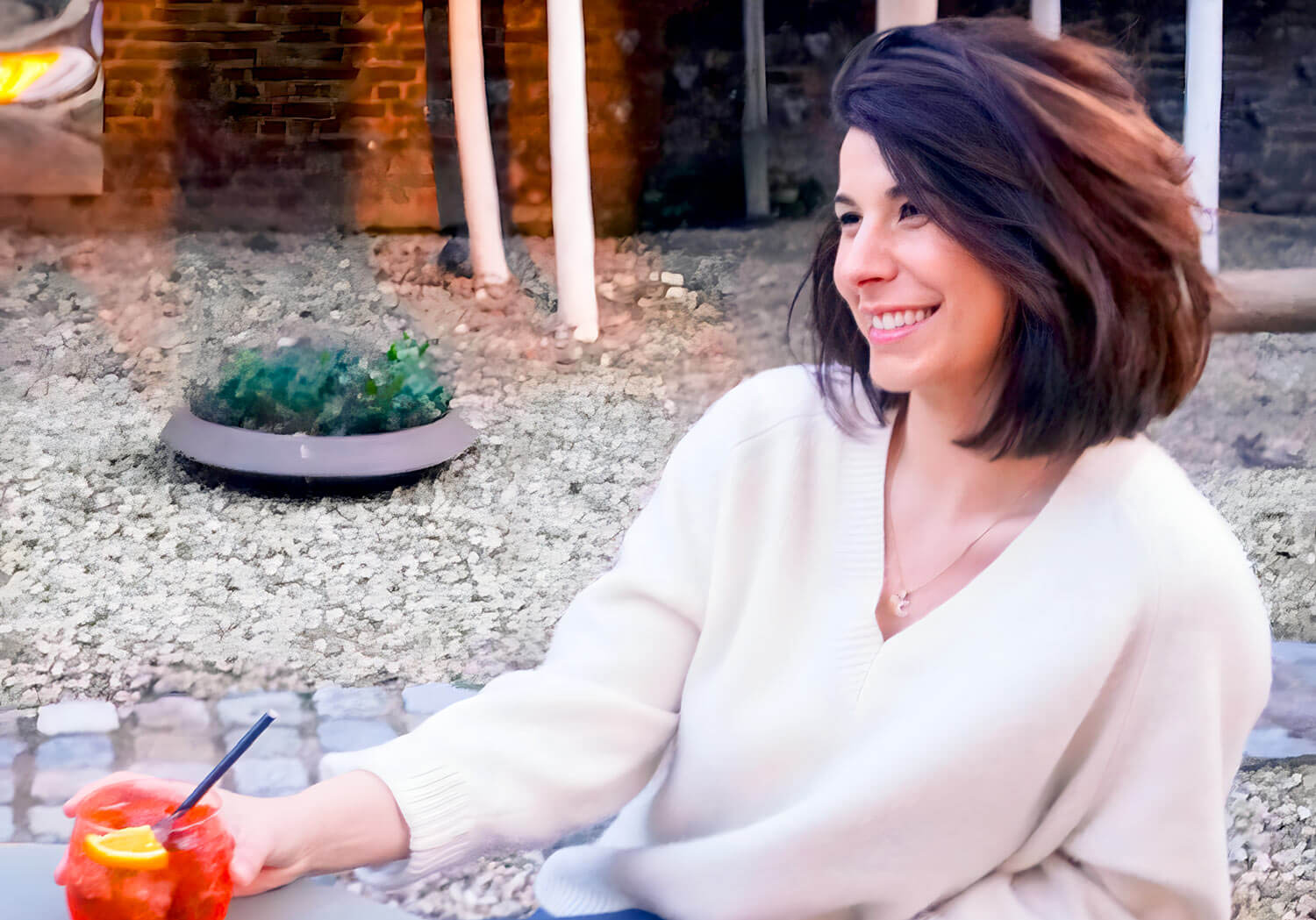 Nous nous retrouvons chez Olga, bistrot logé dans une magnifique demeure à Liège. La pergola chauffée façon terrasse parisienne et le jardin hors du temps, où les enfants filent vers l’aire de jeux, composent un décor qui invite à souffler. Fanny commande un Spritz, “de quoi décompresser après une grosse semaine”, signe de son côté épicurien.
